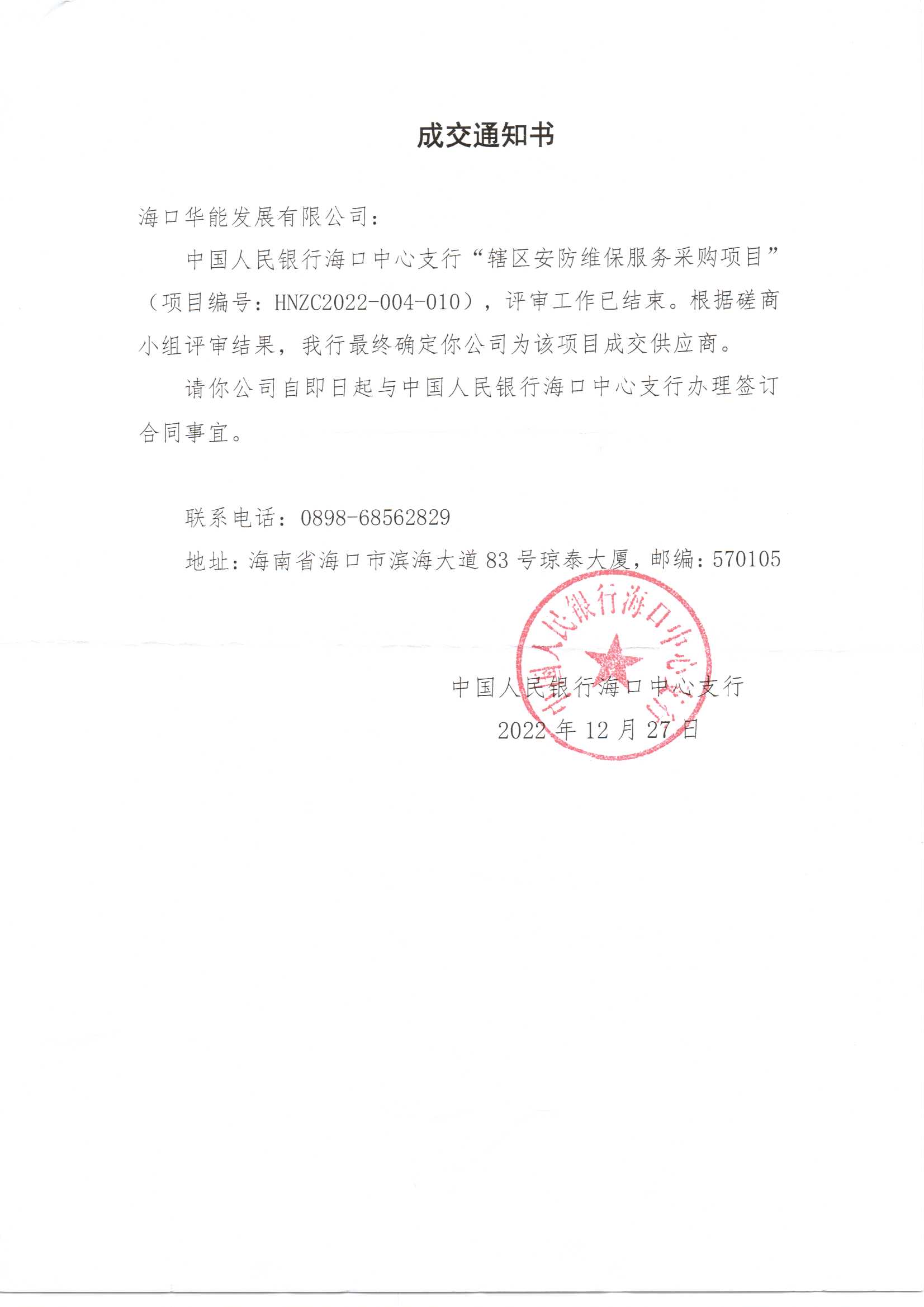 中國人民銀行??谥行闹小拜爡^(qū)安防維保服務(wù)采購項(xiàng)目”